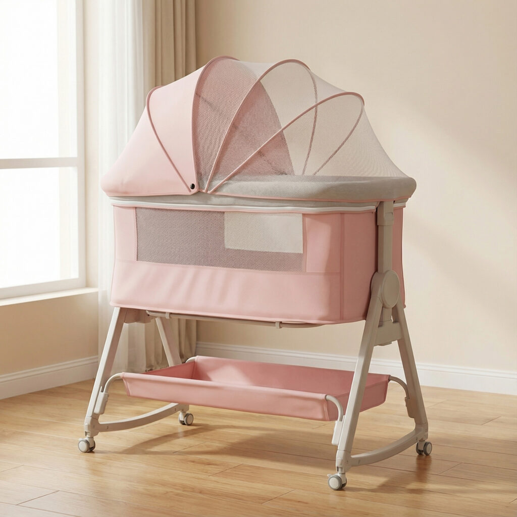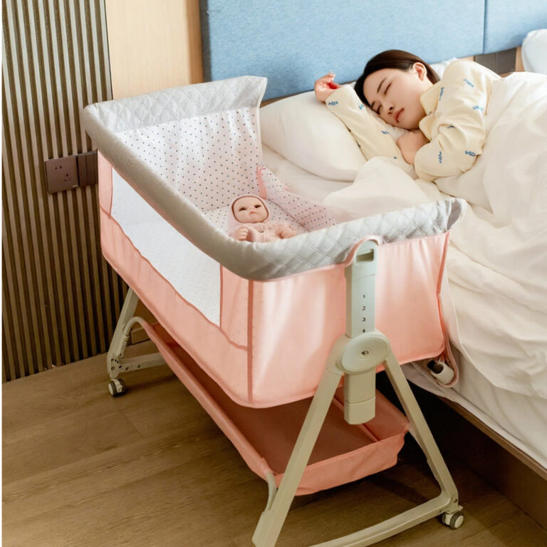 - Adjustable height ,rocking function, next to parent bed .