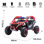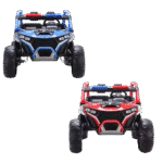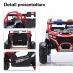 The whole vehicle adopts a simulated UTV off-road design, with a tough body and large-size off-road tires, and the aura is full! With a body size of 136.5×86×77.5cm, the domineering appearance + exquisite details (such as simulated instrument clusters, off-road guards) instantly ignite the child’s enthusiasm for “explorers”. It also provides red and blue two–color options to meet individual preferences, and going out on the street is the “most beautiful cub“!