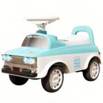 This retro music children‘s glide car perfectly fits the needs of fun, safety and practicality – it comes with cheerful sound effects, large comfortable seats, and hidden intimate storage space.